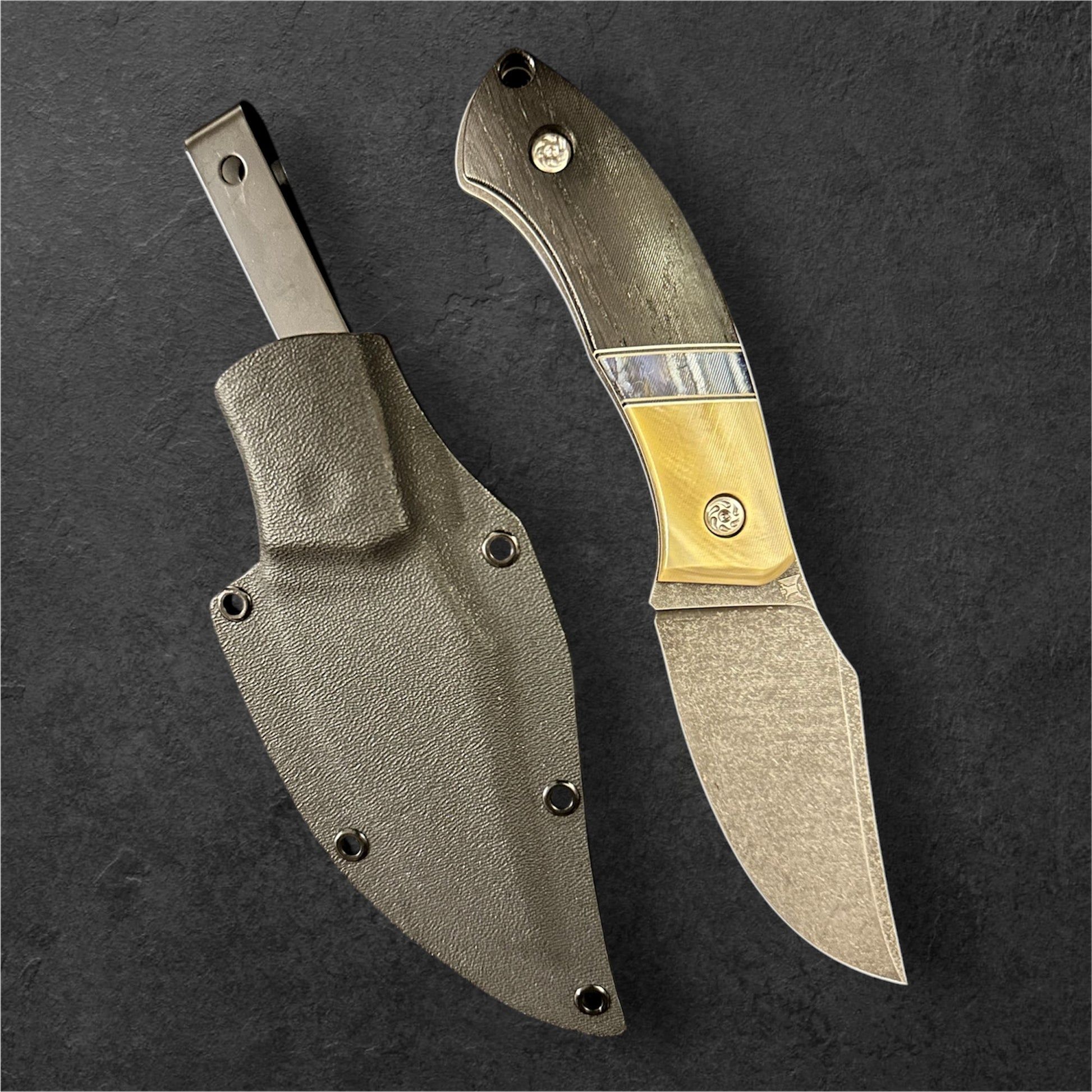 Finished with custom hardware and paired with a precision-fit Kydex sheath, it’s a perfect blend of prehistoric beauty and modern performance.